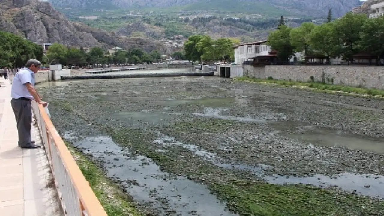 Amasya'nın ortasından geçen Yeşilırmak Nehri`nde oluşturulan kauçuk bendin denenmesi esnasında sular çekilince ırmak yatağı tarihinde ilk kez susuz kaldı