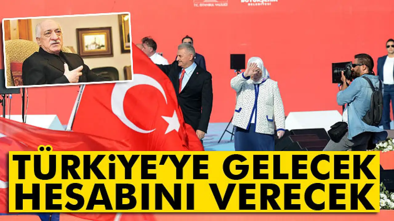 Fetullah Gülen'in mutlaka Türkiye'ye getirileceğini söyleyen Başbakan Yıldırım, '15 Temmuz gecesi milletimize zehir eden terör örgütü lideri FETÖ Türkiye'ye gelecek hesabını verecektir'' dedi