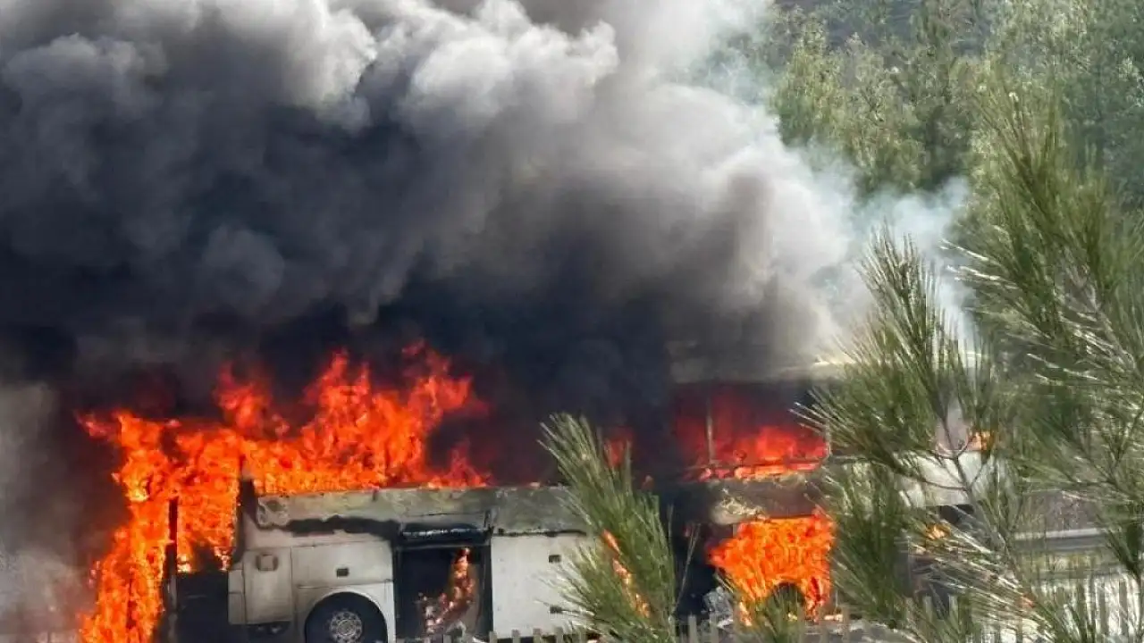 Adana'da Pozantı istikametine giden yolcu otobüsü alev alev yandı.
