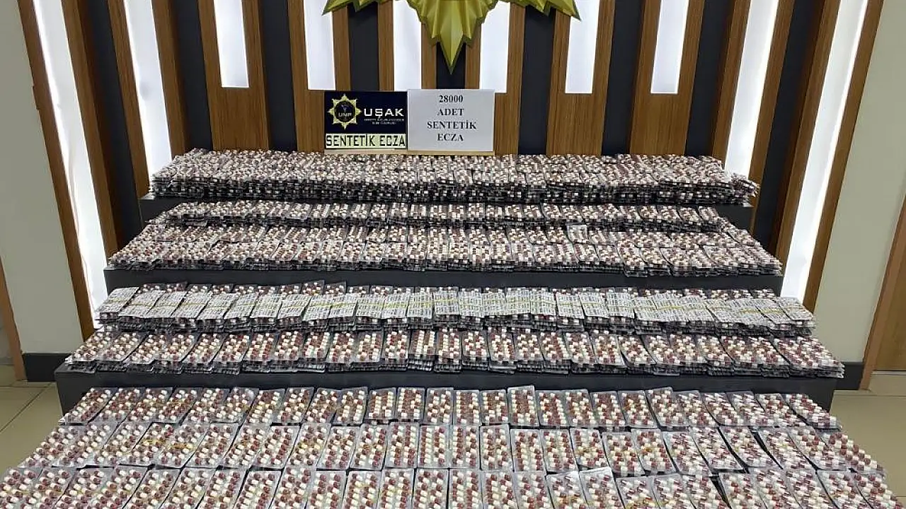 Uşak İl Emniyet Müdürlüğü Narkotik Suçlarla Mücadele Şube Müdürlüğü ekipleri, uygulama noktasında durdurdukları bir yolcu otobüsünün bagaj kısmında arama yaptı. Yapılan aramada, valizler içinde 28 bin adet sentetik ecza bulundu.