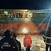 İtfaiye merdiveni geminin dalgalar nedeniyle sallanması sonucu hasar görünce kurtarma çalışmasına ara verildi.