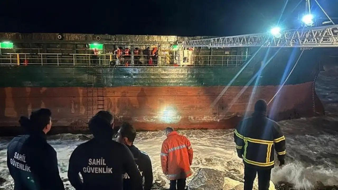 Karaya oturan gemideki 2'si Türk 11 kişilik mürettebatın kurtarılması amacıyla AFAD, sahil güvenlik ve itfaiye ekipleri çalışma başlattı.