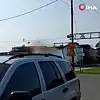 ABD'nin Kuzey Carolina eyaletinde hızla gelen yük treni, hemzemin geçitteki raylara sıkışan kamyona çarptı. O anlar amatör kameraya yansırken, şoförün önceden aracı terk etmesiyle facianın önüne geçildi.