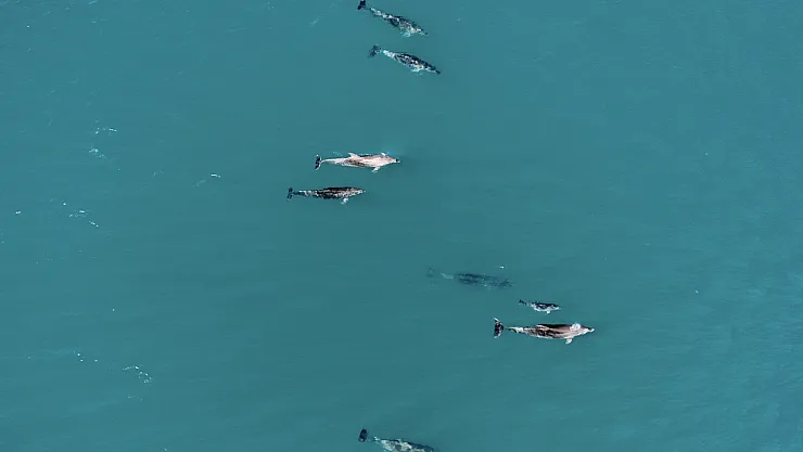 Karadeniz'de sürü halinde dolaşan yunuslar dronla görüntülendi