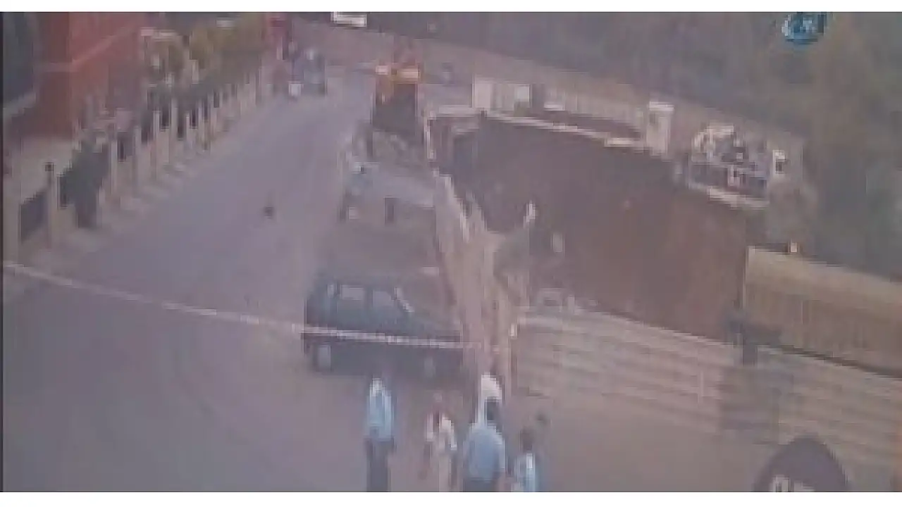 Görüntülerde, saat 04.45 sıralarında inşaatın istinat duvarlarını tutan beton sütunların devrildiği görülüyor. Ardından inşaat çevresi toz bulutuyla kaplanıyor. Daha sonra yetkililer, inşaat çevresinde önlem alarak, yolu trafiğe kapatıyor. Saat 06.30 sıralarında ise inşatta ikinci kez toprak kayması yaşanıyor. İnşaat çevresinde bulunanlar büyük panik yaşıyor.