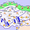 Orta Karadeniz kıyıları, Doğu Karadeniz, Doğu Anadolu'nun kuzeydoğusu ile İstanbul çevreleri, Sakarya ve Kocaeli'nin iç kesimleri, Sinop, Tokat, Muş, Bitlis'in kuzeyi ile Van çevrelerinin yerel olmak üzere sağanak ve gök gürültülü sağanak yağışlı