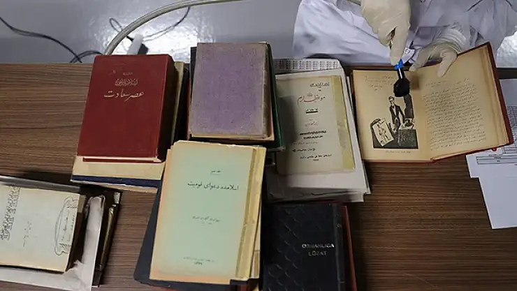 enellikle kütüphane koleksiyonunda yer alan eserlerin restorasyonlarının yapıldığını dile getiren Özer, ilk olarak kitapların belgelendirmelerinin yapıldığını ve kuru temizleme ünitesinde hasar durumlarının tespit edildiğini söyledi.