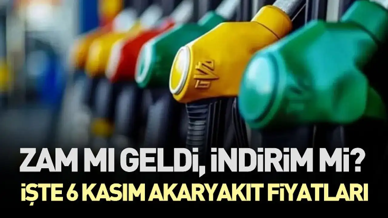6 Kasım 2025 itibarıyla akaryakıt fiyatlarında herhangi bir değişiklik yaşanmadı. Benzin, motorin ve LPG fiyatları sabit kaldı. Türkiye genelinde ortalama fiyatlara bakıldığında; benzin litre fiyatı 54,35 TL, motorin 56,46 TL, LPG ise 27,60 TL seviyelerinde bulunuyor.