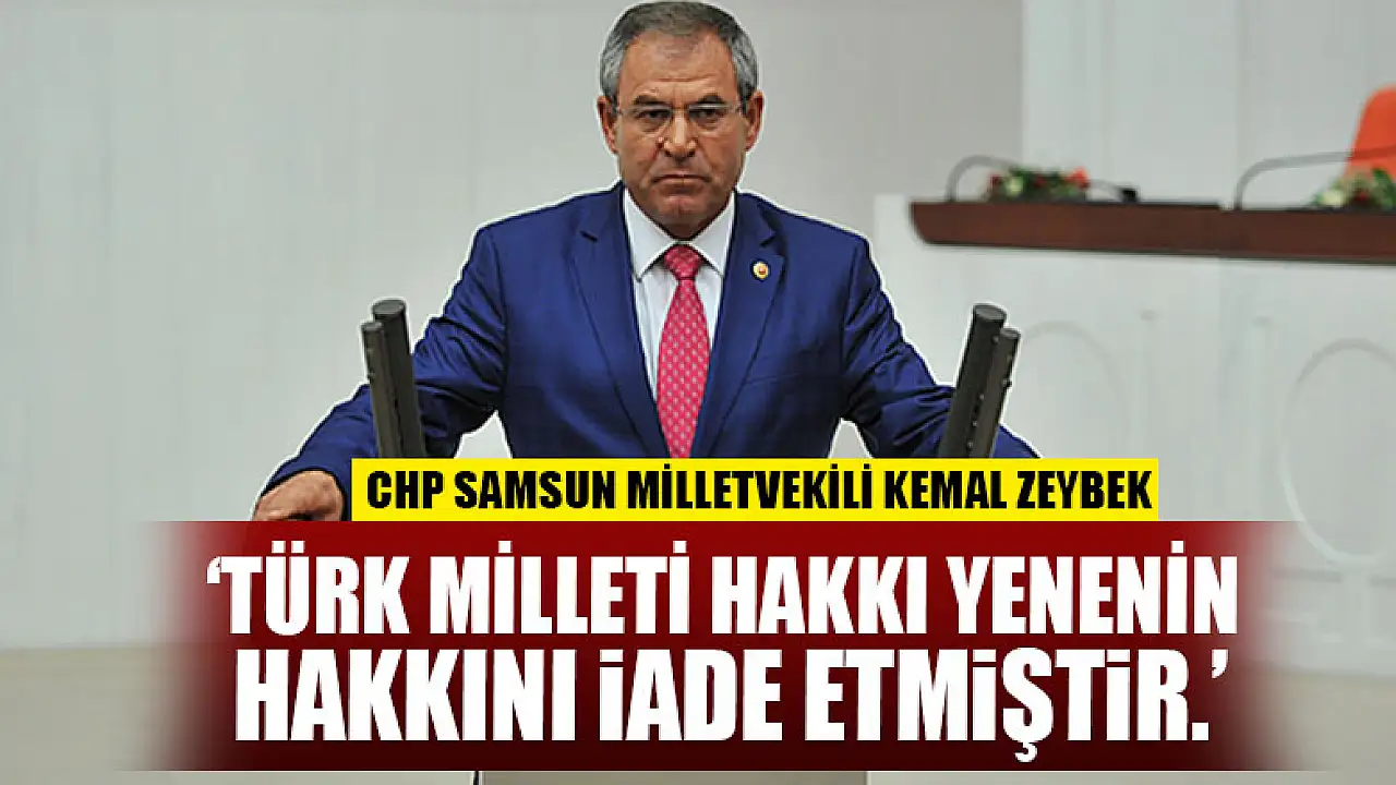 Zeybek, 'Türk milleti hakkı yenenin hakkını iade etmiştir.'