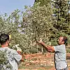 ilk güz yağmuru sonrasında çiftlikteki zeytin ağaçlarının meyvelerini toplamaya başladı