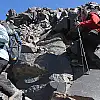 Yüksek rakıma uyum sağlamak ve dinlenmek için burada kurdukları çadırlarda geceyi geçiren dağcılar, ikinci günün sabahında yeniden yürüyüşe başlayarak dik yolları aşıp 4200 rakımdaki kamp alanına varıyor.